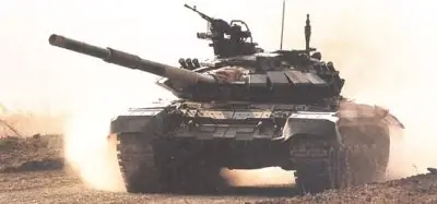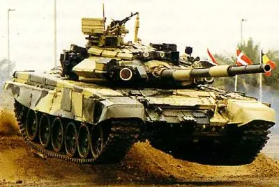 -El T-90 es el más moderno tanque actualmente en servicio tanto en Rusia como en la India. Constituye la evolución del T-72 y representa una mejora en las características del resto de los tanques rusos en los aspectos de peso, tamaño, armamento y movilidad. Se encuentra protegido por un blindaje de tipo reactivo, pintura especial que ciega los laser y el sistema Shtora-1 (el cual es un equipo de interferencia electroóptico que confunde a los misiles antitanque guiados, además de detectar y perturbar las miras y telémetros laser).