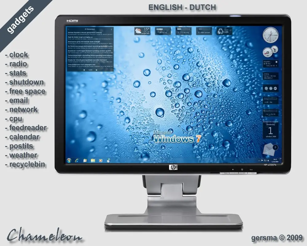 Si no estas a gusto con los que trae por defecto el sistema o lo que buscas es personalizarlo a tu antojo y diferenciarte del resto, te presento algunos gadgets para Windows 7 que encuentras en el pack Chameleon, algunos de los gadgets que encontraremos son los siguientes :