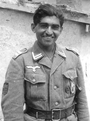 dijo:Juro por Dios este juramento sagrado que voy a obedecer al líder de la raza alemana y el Estado, Adolf Hitler, como el comandante de las fuerzas armadas alemanas en la lucha por la India, cuyo líder es Subhas Chandra Bose. Quería a 500 voluntarios que serían capacitados en Alemania y luego en paracaídas en la India. Todos levantaron la mano. Miles de nosotros como voluntarios.