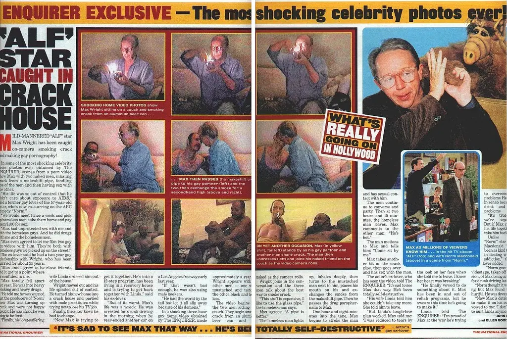 Aunque el que peor quedó fue Max Wright, que no pudo soportar que la ficción sobre el habitante de Melmac se terminara y terminó en una fiestonga con vagabundos y crack en la que no faltó un celular con camarita: