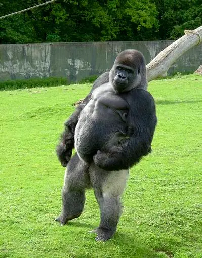 Ambam, un gorila de 21 años que vive en un zoo de Kent (Inglaterra), tiene la capacidad de andar como un ser humano. Completamente erguido y sobre dos patas. Y puede caminar en esa postura durante todo el tiempo que quiera.