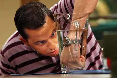 * En el episodio en que Charlie despierta a la madrugada a su familia para que vean la primera transmisión de la publicidad de Charlie Waffles, al finalizar se queda viendo Dharma y Greg, serie creada por Chuck Lorre, también creador de Two and a Half Men. (gracias Fernando)