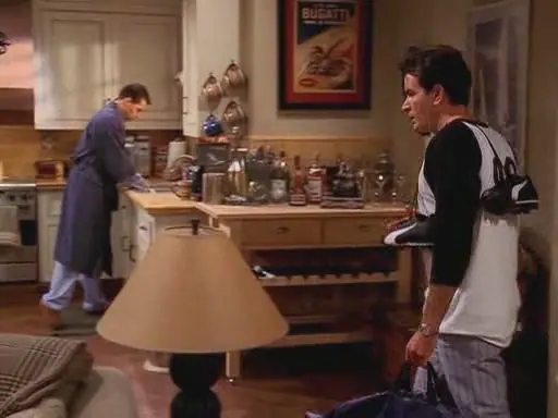 * En la película Due Date, protagonizada por Robert Downey Jr, el sueño del personaje que interpreta Zach Galifianakis era aparecer en Two and a Half Men. SPOILER DE LA PELÍCULA, al final lo logra, y nos deja esta escena con Alan y Charlie Harper.