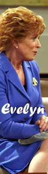 Evelyn no es precisamente la madre más querida del mundo, sus hijos la odian y su nieto intenta evitarla. La principal razón por la que la odien, puede ser que ninguno de los dos tiene un buen recuerdo de su infancia, ya que consideran que su madre nunca los amó, siempre estaba más preocupada por conseguir otro marido, nunca les daba importancia, y cada vez que podía los enviaba a un internado o un campamento lejos. Incluso llegó a enviarlos a un kibutz en Israel donde, según palabras de Charlie, los golpeaban por no ser judíos