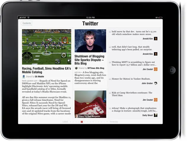 (gratuito): Twitter y Facebook tienen diseños de vanguardia, con enlaces que lo envían a cualquier parte para ver qué le interesa a la gente. Flipboard racionaliza esta locura editorial. La aplicación convierte el contenido de Facebook a formato de revista, mostrando todas las historias que sus amigos recomendaron, con fotos y actualizaciones. Usted puede crear otras revistas personalizadas a partir de mensajes de Twitter, sobre temas de su elección.