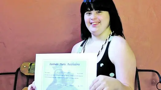 CON DIPLOMA. MECKY SCIUTTI MUESTRA ORGULLOSA SU CERTIFICADO DEL COLEGIO