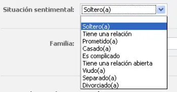De acuerdo con marketingdirecto.com , casi 44 millones de usuarios son solteros, mientras que 37 millones están casados, 6 millones están comprometidos, 28 millones tienen una relación y 3 millones han puesto en su situación sentimental: "es complicado".