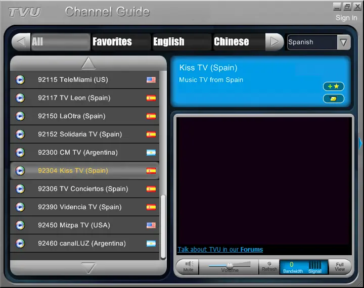 TVU Networks ofrece un servicio gratuito de mundial de televisión en directo que se puede ver en su PC con Windows o Mac a través de una conexión a Internet de banda ancha. Este servicio se dedica a hacerle llegar la televisión que no se puede conseguir de cable o satélite, tales como noticias y deportes de todo el mundo.