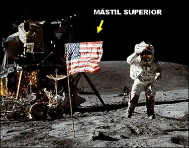 Otro argumento esgrimido a menudo es el porqué la bandera estadounidense ondea en uno de los vídeos. Como no hay viento en la Luna, esto no debería ocurrir. Sin embargo, tal como puede verse en muchas fotografías, la bandera tenía un soporte en su parte superior para que permaneciera extendida. Las arrugas y ondulaciones producidas por haber estado legada durante el viaje le da una apariencia que puede confundirse con la de una bandera ondeando, pero en realidad, los videos muestran como se queda completamente inmóvil luego de que los astronautas la colocan sobre la Luna.