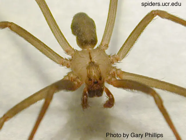 Araña reclusa parda: Es la araña más peligrosa para el ser humano, después de la viuda negra. Se caracteriza porque en la espalda tiene una forma de violín. Habita en lugares olvidados, sobre todo en Estados Unidos. Su mordedura mata las células de la piel, lo que puede tener como consecuencia la amputación del área afectada.