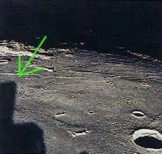 Según la Nasa, la extraña silueta que aparece en la foto, tomada desde el Módulo Lunar a 95km de la superficie lunar, es la sombra proyectada por el cohete del Módulo de Mando. Pero cuando un avión de gran tamaño vuela a baja altura sobre la Tierra, no proyecta sombras tan enormes y definidas.