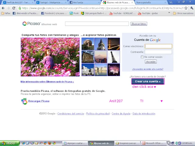 entren a esta pagina : https://www.google.com/accounts/ServiceLogin?hl=es&continue=http://picasaweb.google.com/lh/login%3Fcontinue%3Dhttp%253A%252F%252Fpicasaweb.google.com%252Fhome&service=lh2<mpl=gp&passive=true