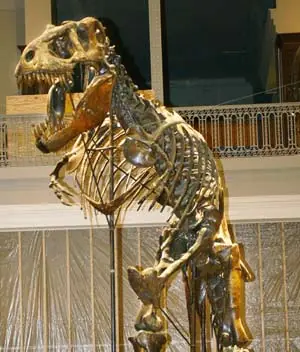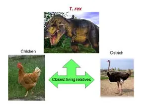 Una investigación, dirigida por Chris Organ, de la Universidad de Harvard, ha revelado este curioso parentesco del temible Tiranosaurio rex (el 'reptil tirano', significa su nombre) gracias a las secuencias de una proteína conseguida del colágeno de un fósil de hace 68 millones de años.