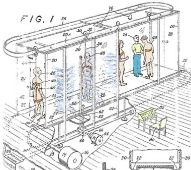 Desarrollado en 1969 durante la guerra fría, el inventor sugiere Human Car Wash se puede construir en un remolque móvil "para hacer frente a los requisitos de baño de masas después de una bomba atómica".
