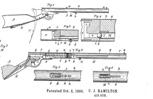 Suelen consistir en un rifle o pistola, que tiene una cámara de potencia en la que un muelle es sometido a compresión y mantenido así por el mecanismo del gatillo. Al accionar el gatillo, el muelle es liberado y acciona un pistón que comprime aire que pasa al cañón, donde reposa el balín. Bajo la fuerza del aire comprimido por el pistón, el balín se ve obligado a atravesar el cañón a alta velocidad, para, una vez en el aire, iniciar su vuelo libre hasta el blanco. Los modelos más económicos y populares suelen ser de tiro único, debiendo amartillar el arma y poner manualmente un balín nuevo en cada disparo. Esto se hace al bascular el cañón hacia abajo, que, por medio de unas bielas, comprime el muelle y deja a la vista la recamara del cañón, donde se coloca el balín.1