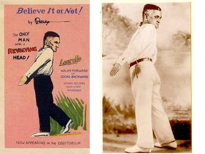 Y es que Martin Laurello tenía la asombrosa capacidad de girar su cabeza 180 grados, hasta apoyar el mentón de la barbilla en su espalda. Era capaz de andar hacia delante mientras miraba hacia atrás; también podía girar su cintura y el pie derecho 180 grados.