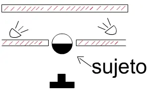 TIP: Para lograr una foto en la cual una sombra contenida en el motivo es la protagonista, se debe colocar un fondo blanco, iluminado a cada lado con una luz dura, y luego el sujeto, de espaldas al fondo, con 2 divisiones para que la luz no afecte la parte delantera de él. Es mejor colocar al sujeto de perfil, ya que éste contiene mas información.