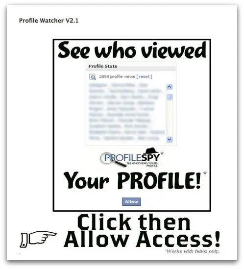 Recientemente se supo que el 20% de los perfiles de la red social estaban infectados. Entre las causas de esta plaga está la tentación de saber qué gente accede a nuestro perfil de Facebook. Los virus han visto en ello un filón para enviar spam e instalar contenido malicioso. En concreto la última amenaza descubierta consiste en el siguiente mensaje: