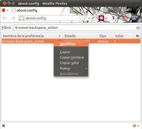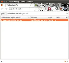 2.- Ahora escribimos el filtro “browser.backspace_action” y nos aparecerá lo siguiente: