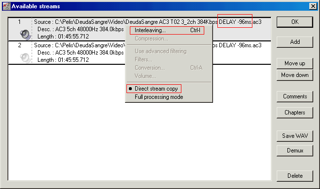 Ojo!, esto es válido cuando el desfase del Vídeo y el Audio es constante a lo largo de toda la película, en el caso de que el desfase sea progresivo, el problema se complica un poco y si el desfase es una combinación de ambos, tendremos un gran problema.