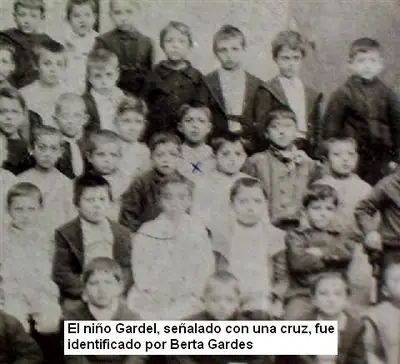 Es una foto donde se ve un grupo escolar de 56 niños varones de entre 6 y 10 años de edad, en la cual está Gardel niño, de acuerdo a propias declaraciones de Berta Gardes, quien señaló a éste con un círculo.