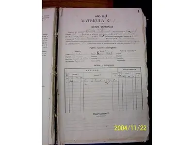 Primer libro de matrícula escolar- Año 1900. Recién a partir de 1900 comenzaron a anotarse los nombres de los niños que asistían a la escuela. Si alguna escuela matriculaba antes de esa fecha a los niños no se ha encontrado hasta ahora.