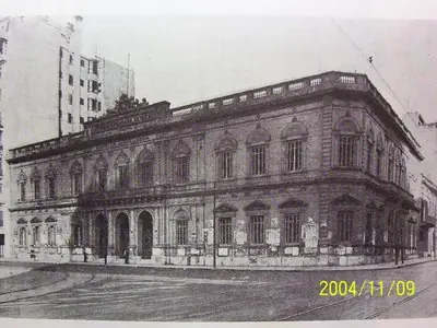 El viejo edificio poco antes de su demolición. Lo vemos ya circundado por edificios de departamentos.