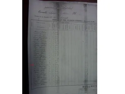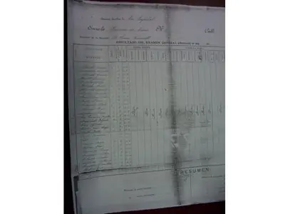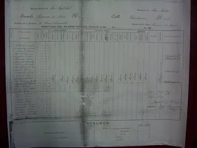 Primera hoja completa del resultado del Examen general de 1897 donde figuran los nombres de los niños anotados