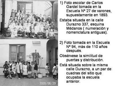 2) El propio Carlos Gardel expresó al Sr. Salterain Herrera haber concurrido a la escuela Nº 27 del barrio Sur de Montevideo, situada en la calle Durazno casi Médanos. (Avlis, en el libro “Carlos Gardel, El hombre y su muerte”, pag. 77)