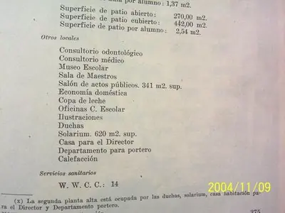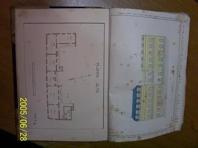 Aquí ven Uds el libro donde se encuentran los planos de las escuelas montevideanas de la época y la página donde está el plano y la descripción del edificio de la escuela de Durazno y Médanos