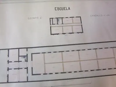Plano de la escuela de varones de la calle Cangallo 1136. A esta escuela pudo haber asistido Gardel porque estaba muy cercana a la calle Uruguay 162 donde vivió el cantor y figura en 1895 en la guía Kraft. No he podido averiguar todavía si existen archivos de la misma.