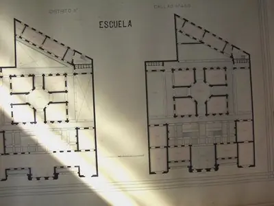 Planos de escuelas montevideanas dibujados por las directoras de cada escuela.