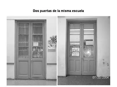 Si Uds visitan la Escuela Nº 94 de Durazno 1331 verán que el parecido con la que se ve en la foto de Gardel es evidente. Tiene el mismo tipo de puertas y de distribución, lógicamente con algunas variantes acentuadas por las reformas posteriores.