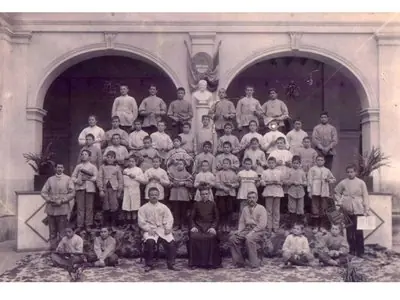 Recordemos que se trataba de una escuela de niñas y en la foto son todos varones.