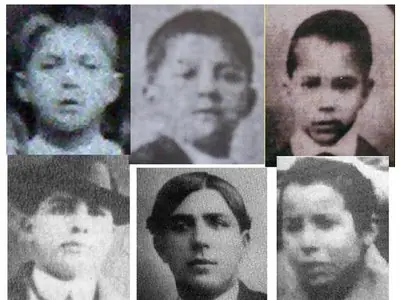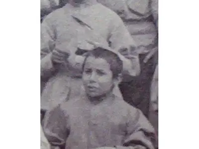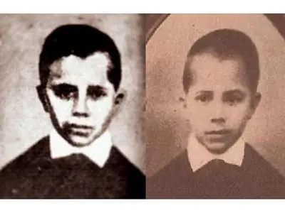 Fotografía ampliada del niño identificado como Carlos Gardes, de 10 u 11 años de edad.
