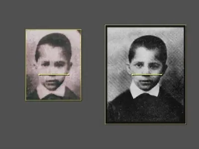 Los estudios comparativos de superposiciones digitalizadas, cortes sagitales y diversas mezclas de ambas fotos realizados señalan la no existencia de coincidencias fisonómicas significativas entre el niño del retrato nº 1 y el niño del retrato nº 2, vale decir, son dos niños diferentes.