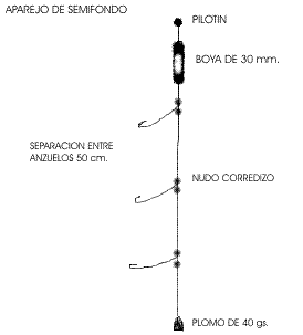 Linea lagunera que permite regular la profundidad del anzuelo segun se vaya registrando el pique. (a tenerla en cuenta).