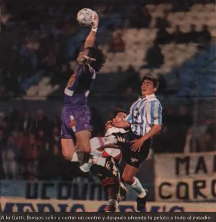 Así lo cuenta él: "Se me tiró mal. Yo me acuerdo que quedó la pelota boyando y fui como loco para meter el gol, y en eso lo vi venir al Mono, que salió como para matarme, pero meter el gol era más importante que cuidar mi vida. Burgos se me tiró con las piernas en plancha, y ahí yo se la metí por abajo. Me partió las dos canilleras. Y ahí le dije: "''¿Qué hacés, nene, querés morir en este instante?". Esa frase quedó instalada. Yo lo puteé con todo y él se quedó mudo, porque era un pibe. ¡Y encima el árbitro anuló el gol por offside y me sacó amarilla!.