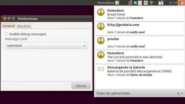 Recent Notifications es un applet para el panel de Gnome que es, básicamente, un historial de notificaciones, pues nos va recopilando todas las que recibimos, de manera que podamos revisarlas en cualquier momento. Nos permite copiar el texto de la notificación o, si hay alguno, el enlace (o abrirlo directamente). También podemos ver únicamente aquellas enviadas por una determinada aplicación.