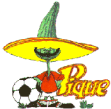 Pique, segunda mascota comestible, para el que se atreva a comerse un chile, que es lo que esta mascotita es. Como buena mascota mundialista siempre estaba acompañado por un balón. Tenía dos detalles salidos del estereotipo mexicano: el sombrerote (aunque en este caso el cono es parte del chile) y un bigote enorme. Muy curioso: Como el animalejo es verde, no lo vistieron con la camiseta del anfitrión, sino con una camiseta roja. Obvio que estamos hablando del mundial deMéxico 1986, en el que brilló Argentina y Maradona.