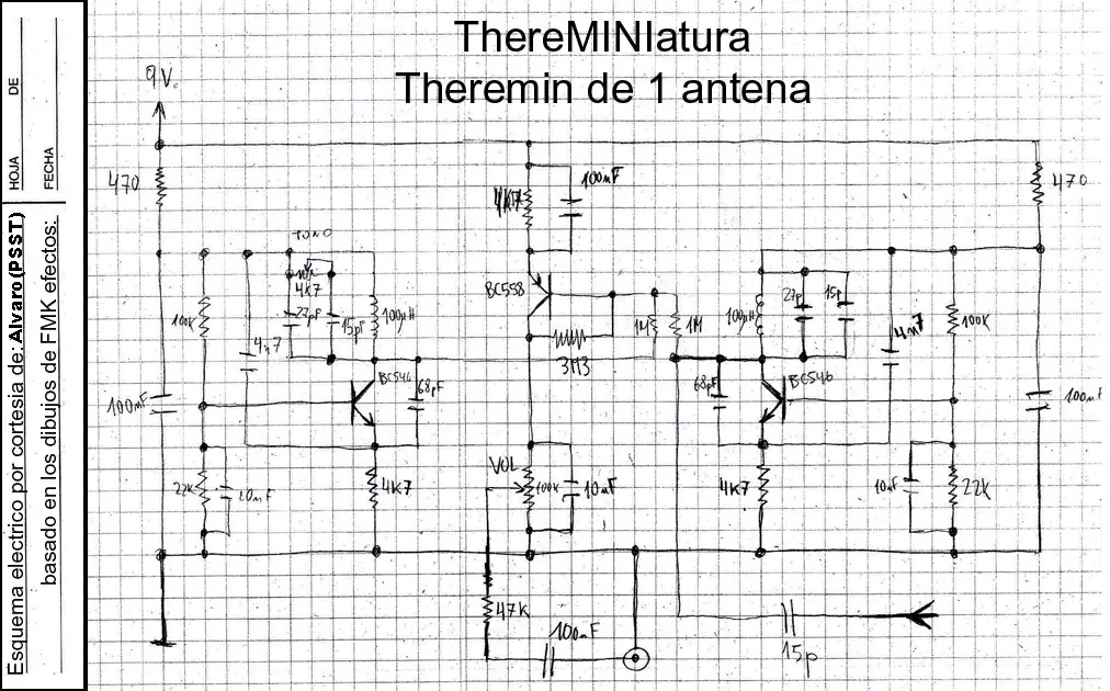 esquema teórico cortesía del amigo "psst". Al final de esta página podéis ver 3 fotos del precioso Theremini que se ha hecho.