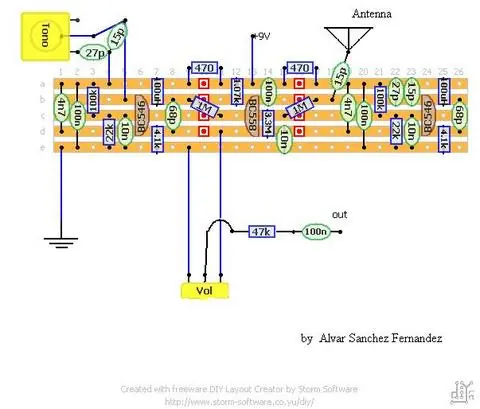 Como véis está realizado, como el original, en tres placas preperforadas tipo "Veroboard". Es muy sencillo de construir pero debéis tener en cuenta lo siguiente.