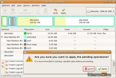 El Gnome incluído en el Ubuntu trae una aplicación muy cómoda para esto llamada Gparted, vamos a eliminar la partición de Windows y crear las particiones de Linux.