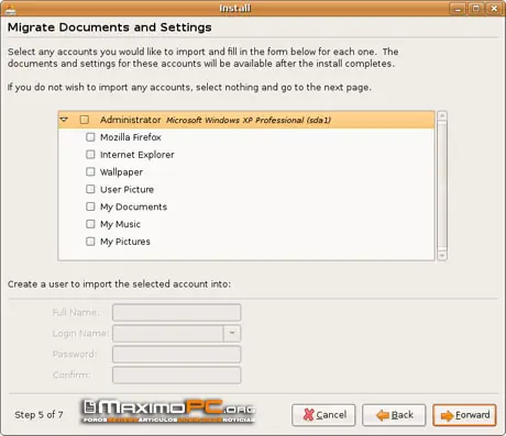El siguiente paso nos permite elegir importar los documentos mas importantes de Windows XP.