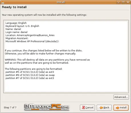 En Ubuntu las cosas se hacen al reves, primero se preguntan los datos relevantes, luego se procede a la copia.