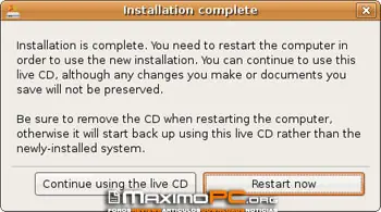 Cuando presionamos "Restart now" ya podemos quitar el CD y considerar la instalación exitosa.