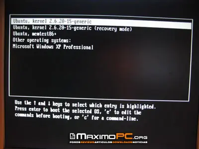 Una vez que reiniciamos la PC nos encontramos con un menu de inicio, este menu se llama "Grub Loader" y es similar al "Windows Boot Manager", una vez aquí, la instalación esta completada y el Ubuntu iniciará sin problemas.