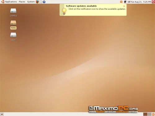Veamos ahora el escritorio y hablemos un poco de una de las cosas mas interesantes que dispone el Ubuntu como distribución basada en Debian.