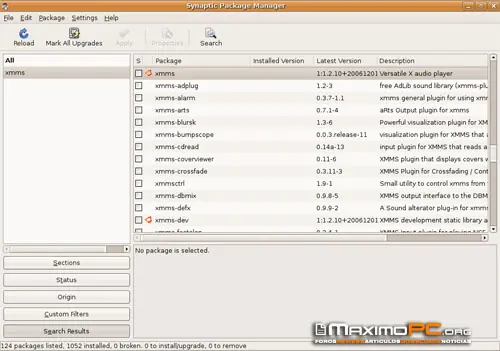 Debido a que los programas vienen pre-empaquetados, no estamos instalando una pila de DLL's (como haríamos en Windows) sino tan solo paquetes que serán descompactados e instalados en los correspondientes directorios sin que tengamos que preocuparnos del proceso, los paquetes de software tienen subcategorías (no es necesario saberlas, ni que contienen dependencias de otros paquetes) pero el tener este conocimiento permite entender mejor lo que ocurre, es comun ver que cada paquete termine con 6buntu3 o ubuntu5, etc, es una forma de dividir las categorías, el paquete principal generalmente tiene el nombre del programa y nada mas, por lo cual es facil incluso bajarlo manualmente sin recurrir al Synaptic (programa gráfico), esto en Ubuntu es incluso mas facil que utilizando Synaptic, en este ejemplo estoy bajando el XMMS que es un programa similar al Winamp, para bajarlo, podemos hacerlo o bien a traves de Synaptic (modo gráfico) o bien por consola, el comando de consola para bajarlo es "sudo apt-get install xmms" paso a explicar que es cada cosa: