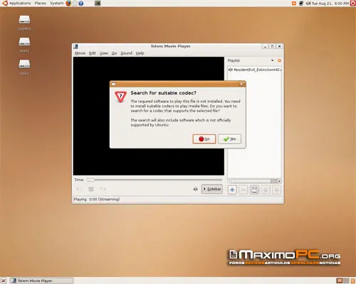 Una vez que se aplican los cambios, hay que cerrar el Totem Media Player (el Player de Video que provee Ubuntu por defecto) y volver a abrirlo con el Archivo de Video para ver si es necesario un Codec Adicional.